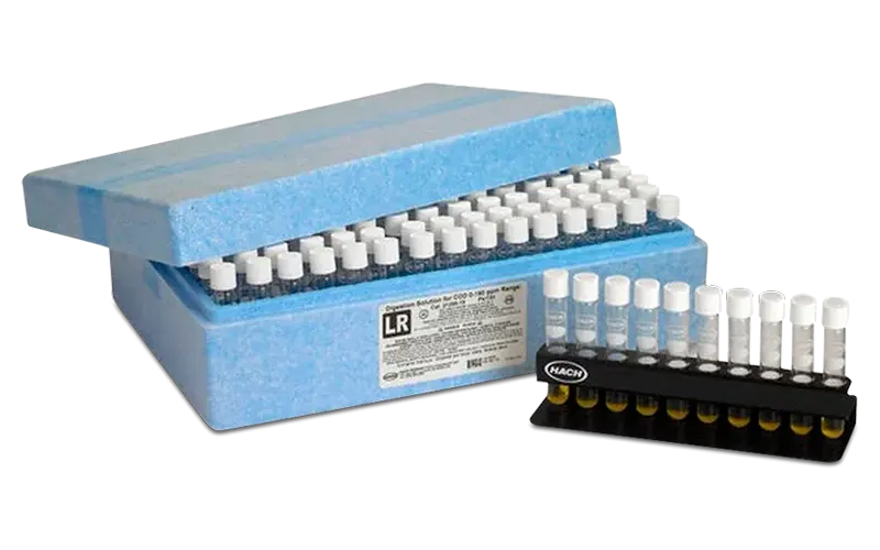 Viales de digestión para demanda química de oxígeno (DQO), rango alto (20 -1500 mg/L), paquete de 150 HACH